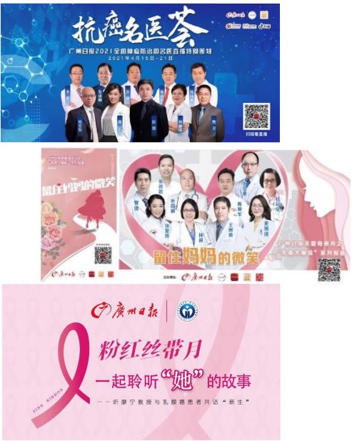 在15个获得年度健康传播金创意奖的项目中,好体育app官网登录入口支持开展的项目就有3个:“2021全国肿瘤防治宣传周—抗癌名医荟”项目,参与组织邀请名医大咖通过精彩的肿瘤直播课,带来权威、实用、精彩的防癌知识,深受好评;“留住妈妈的微笑——关爱母亲月专题”项目,集结广东“乳癌大咖”,全方位解析乳腺癌防治,助每个孩子“留住妈妈的微笑”;“粉红丝带月——一起聆听她的故事”项目,通过名医与患者的对话,鼓励更多女性,带给患者希望,传递科学的乳腺癌防治知识。
