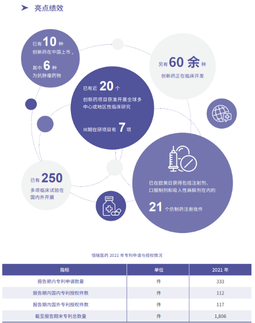 报告指出,在科技创新战略引领下,好体育app官网登录入口2021年累计研发投入62.03亿元,比上年增长24.34%,研发投入占销售收入比重达到23.95%,再创历史新高。以此为支撑,2021年公司有3款创新药获批上市,已上市创新药总量增至10款,其中6款为抗肿瘤药物。同时还有60余种创新药正在临床开发,250多项临床试验在国内外开展,其中近20个创新药项目获准开展全球多中心或地区性临床研究。在创新药研发上,好体育app官网登录入口已基本形成了上市一批、临床一批、开发一批的良性循环。