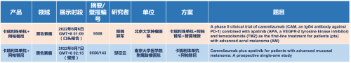 在黑色素瘤领域,好体育app官网登录入口的卡瑞利珠单抗联合阿帕替尼(“双艾”组合)在2022 ASCO共入选1项口头报告和1项壁报展示。