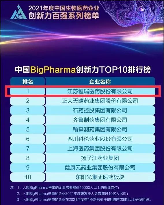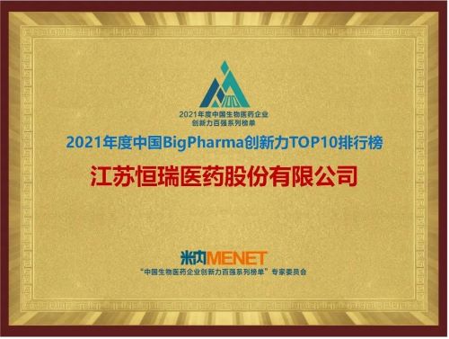 9月16日,由米内网主办的“2021年度中国生物医药企业创新力百强系列榜单”发布会在线上举办。好体育app官网登录入口继去年登顶“中国BigPharma企业创新力TOP10排行榜”后,今年再次名列该榜单首位。