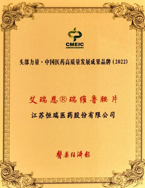 好体育app官网登录入口及创新药艾瑞恩®荣膺“中国医药高质量发展成果企业/品牌”