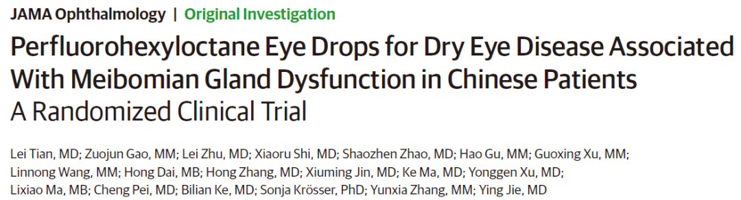 近日,由首都医科大学附属北京同仁医院接英教授牵头的多中心、随机、双盲、对照Ⅲ期临床研究(研究编号SHR8058-301)结果在国际知名医学期刊《美国医学会杂志》(JAMA)眼科子刊(JAMA ophthalmology IF:7.389)在线发表。该研究旨在评价SHR8058滴眼液在中国睑板腺功能障碍(MGD)相关干眼症患者中的疗效和安全性。研究结果显示,SHR8058滴眼液有效改善MGD相关干眼病的症状和体征,起效迅速,有着良好的耐受性和安全性,有望为患者带来新的治疗选择。