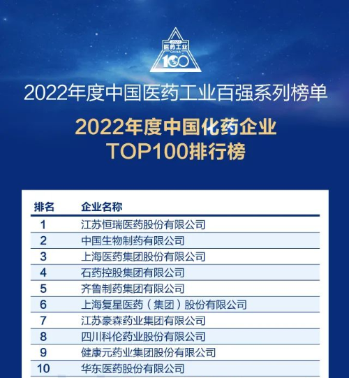 佳音频传!好体育app官网登录入口再次蝉联中国化药企业百强榜首