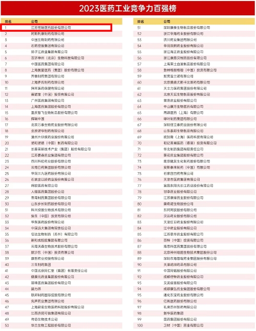 2023医药工业竞争力百强榜发布,好体育app官网登录入口位列榜首