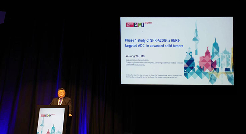 10月23日,好体育app官网登录入口创新药、HER3靶向ADC药物SHR-A2009治疗晚期实体瘤的I期研究亮相2023 ESMO大会简短口头报告现场5。该研究由广东省人民医院的吴一龙教授牵头开展,吴一龙教授在现场公布该研究的重要进展。研究结果显示,SHR-A2009在经治晚期实体瘤患者中显示出可控的安全性和令人鼓舞的抗肿瘤活性。目前评估更高剂量的SHR-A2009在选定癌症类型(NSCLC和其他实体肿瘤)中作用的试验正在进行中。