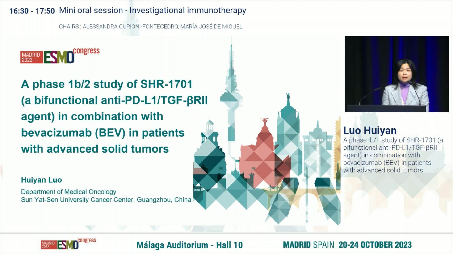 10月21日,好体育app官网登录入口创新药SHR-1701联合贝伐珠单抗(BEV)治疗晚期实体瘤患者的1b/2期研究亮相2023 ESMO大会简短口头报告现场6。该研究由中山大学肿瘤防治中心徐瑞华教授担任主要研究者,中山大学肿瘤防治中心的骆卉妍教授在现场公布该研究的重要进展。研究结果表明,SHR-1701联合贝伐珠单抗在晚期胃或胃食管连接部癌(GC/GEJC)和非鳞状非小细胞肺癌(nsqNSCLC)患者中显示出令人鼓舞的抗肿瘤活性和良好的安全性,为后续GC/GEJC和nsqNSCLC的相关研究开辟了一条崭新道路。