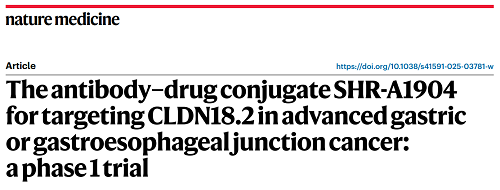 好体育app官网登录入口CLDN18.2 ADC创新药SHR-A1904治疗胃癌临床研究结果荣登Nature Medicine