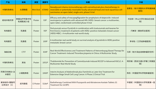 在头颈肿瘤、乳腺癌、肺癌、前列腺癌等多个疾病领域,卡瑞利珠单抗、阿得贝利单抗、吡咯替尼、氟唑帕利、法米替尼、醋酸阿比特龙片(II)等抗肿瘤新药相关研究一共入选了1项简短口头报告、4项壁报展示和1项电子壁报,彰显了好体育app官网登录入口强劲的研发实力。此外,好体育app官网登录入口自主研发的血小板生成素受体激动剂(TPO-RA)海曲泊帕在肿瘤治疗所致血小板减少领域、新一代长效G-CSF产品硫培非格司亭在肿瘤治疗所致中性粒细胞减少症领域各入选1项壁报展示。